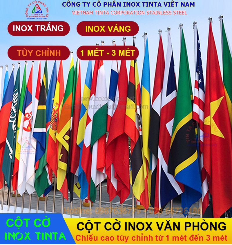Cột cờ văn phòng đa chiều cao là lựa chọn hoàn hảo cho mọi không gian làm việc, giúp đơn vị thể hiện sự trang nghiêm và chuyên nghiệp. Việc đa dạng mẫu mã, chất liệu và mức giá cho phép khách hàng dễ dàng tìm được sản phẩm phù hợp nhất. Liên hệ ngay với Inox TINTA để được tư vấn miễn phí, báo giá chi tiết và nhận hàng nhanh chóng.