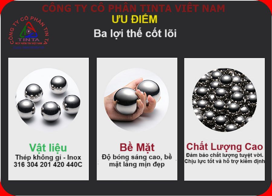 Viên bi thép chịu lực nhiều size bán giá sỉ theo giá tại xưởng gia công theo yêu cầu. Thương hiệu: Công Ty Cổ Phần TINTA Việt Nam, gia công sản xuất và cung cấp các loại bi inox, bi thép chịu lực nhiều sizes.