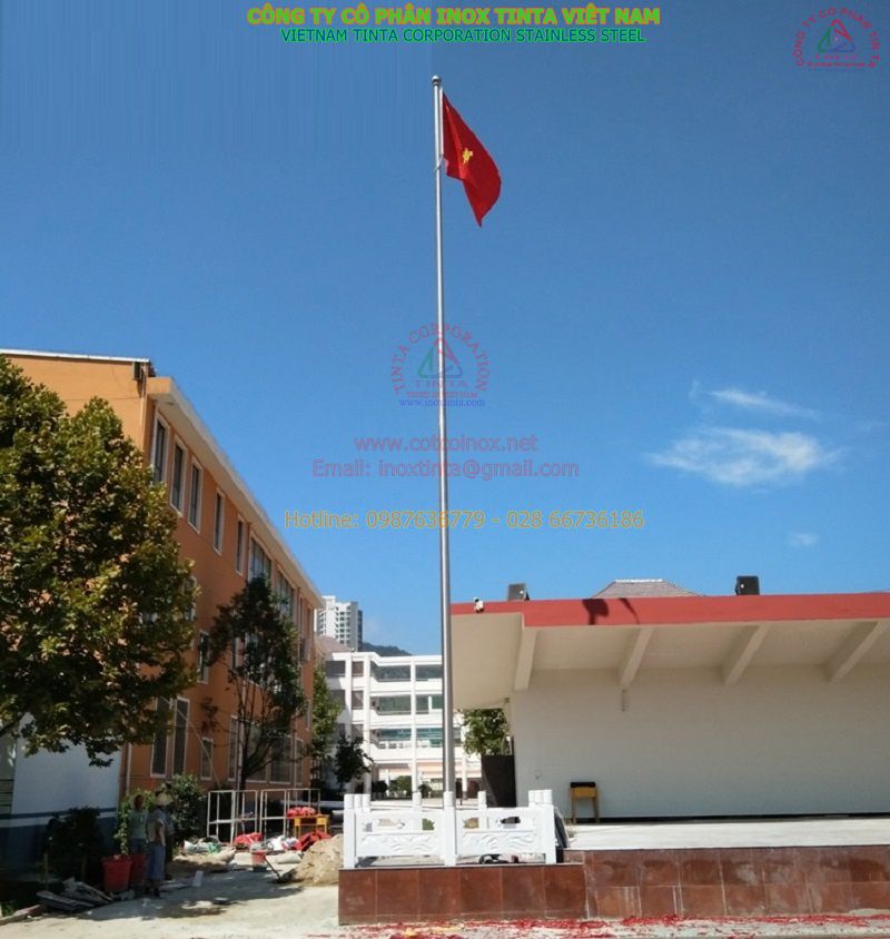 Cột cờ bằng inox không bị rỉ, bề mặt được phun sơn tĩnh điện.