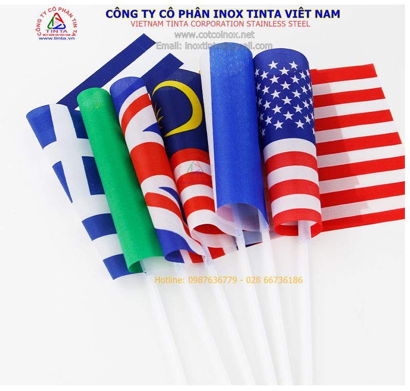 - Chất liệu lá cờ: Vải Nano cao cấp, in cờ các nước chất lượng cao.