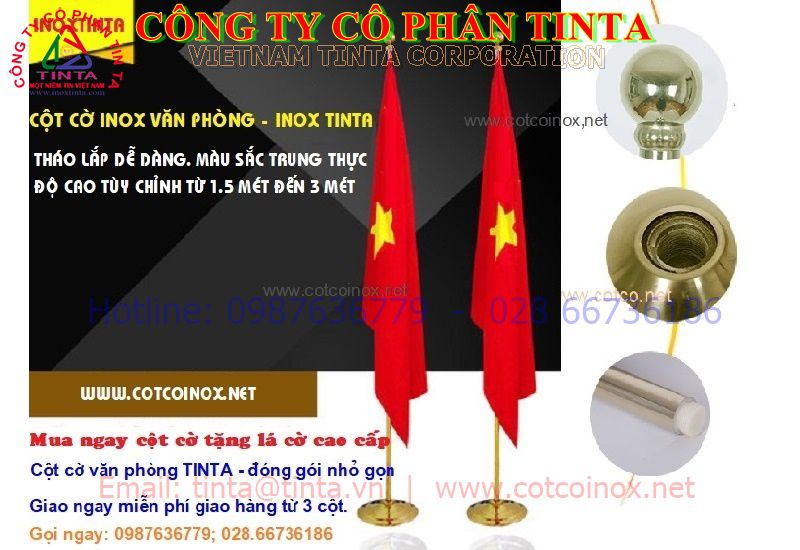 Hãy để cột cờ xi mạ vàng thường tùy chỉnh độ cao đa dạng của TINTA góp phần làm nổi bật không gian làm việc và sự kiện của bạn với vẻ đẹp sang trọng, linh hoạt và bền bỉ!